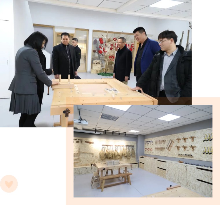 华夏未来新时代幼儿园园长向来宾展示鲁小班木工坊运营情况